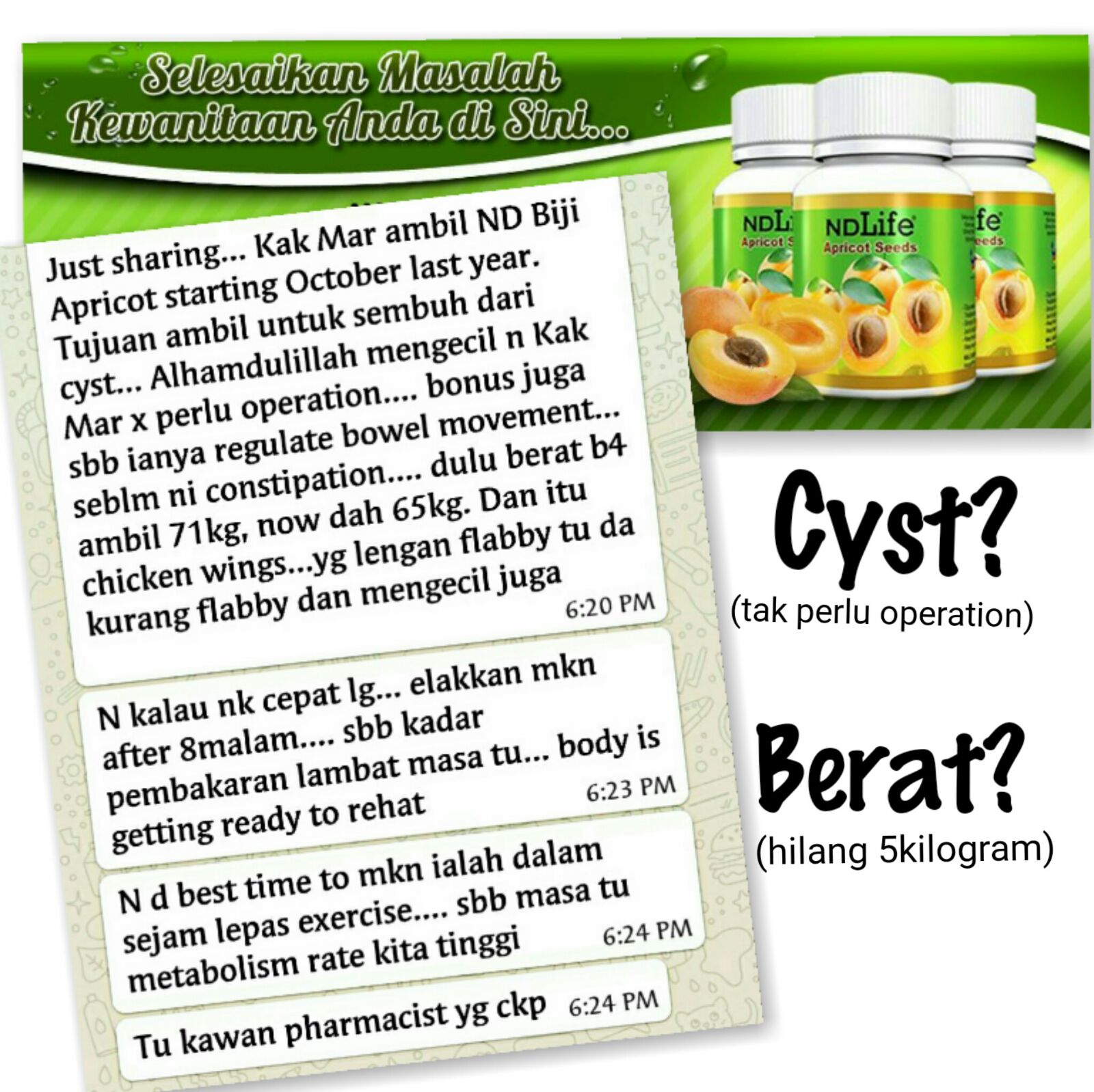 Testimoni Kanser Cyst Fibroid Dengan Kapsul Aprikot Ndlife