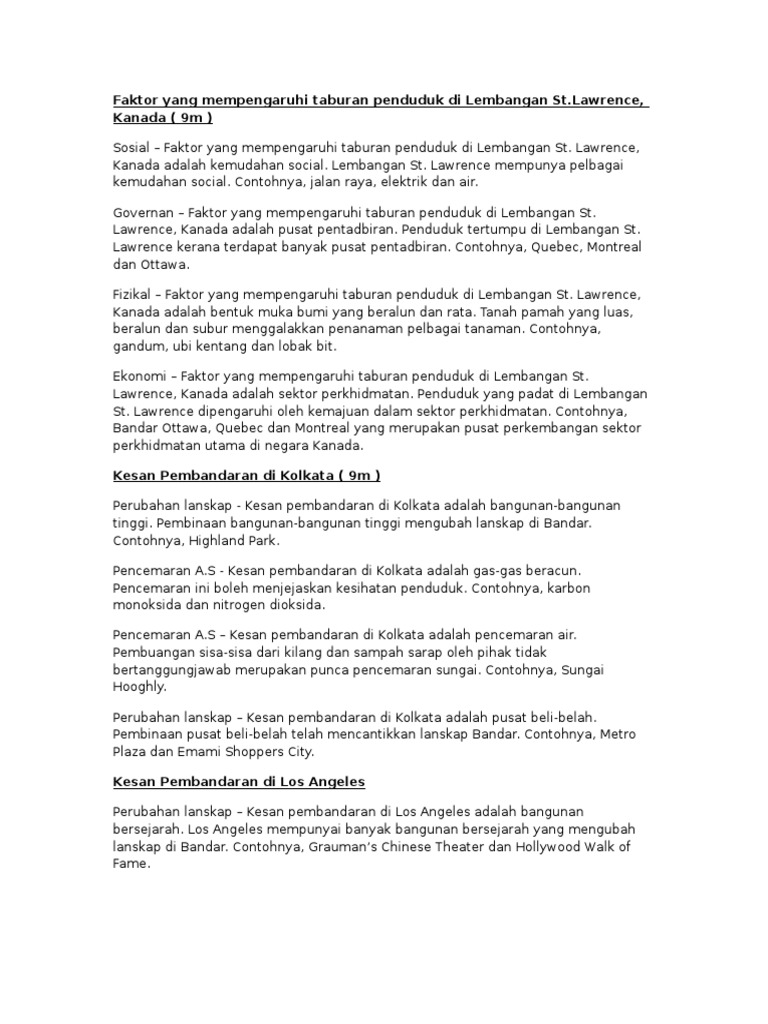 Faktor Yang Mempengaruhi Taburan Penduduk Di Lembangan St