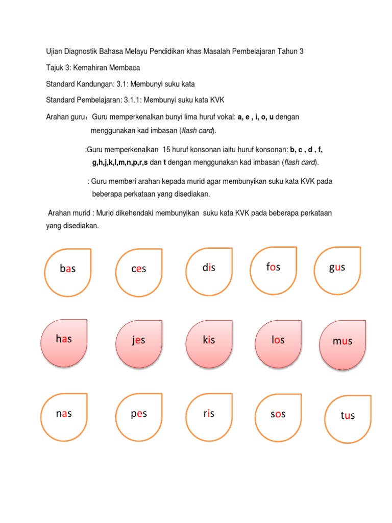 Ujian Diagnostik Bahasa Malaysia Tahun 2 Pendidikan Khas Masalah Pembelajaran